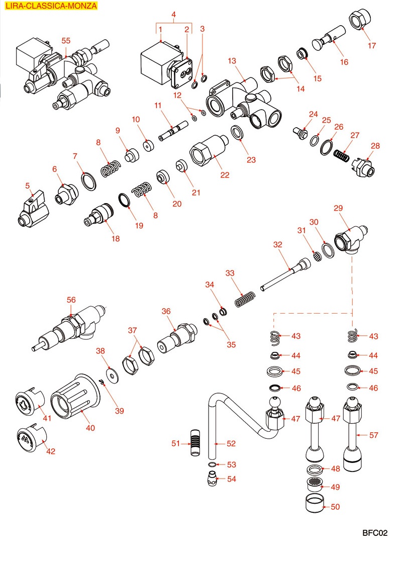 Ventil horké vody a páry pro kávovary BFC