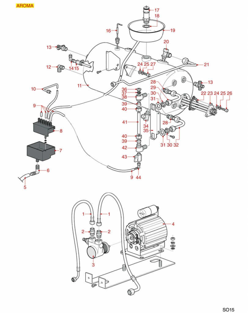 Bojler a vodoznak kávovaru Aroma